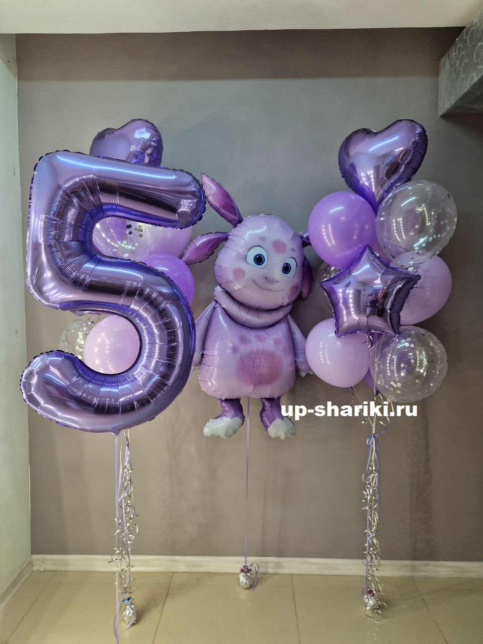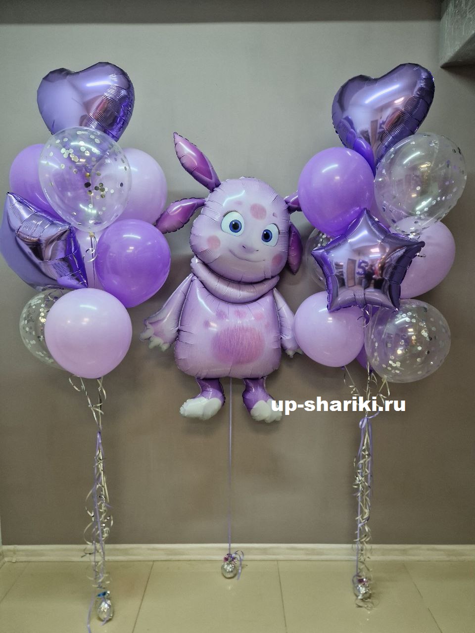 Набор 124 Фигура фольгированная «Лунтик» — 1 шт Цифра фольгированная — 1 шт Фигура фольгированная «Сердце» — 2 шт Фигура фольгированная «Звезда» — 2 шт Шар кристалл с конфетти — 6 шт Шар пастель — 10 шт Грузик — 4 шт